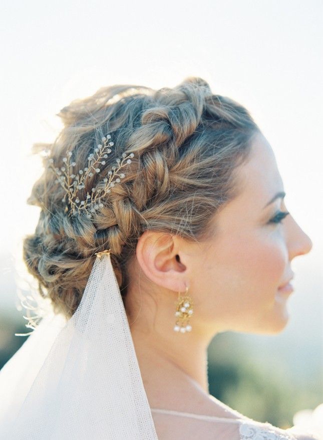 The best place to position your veil when wearing this hairstyle is right at the point above where the hair intersects. Doing this will secure your veil firmly. You can also add your hairpiece at this point.